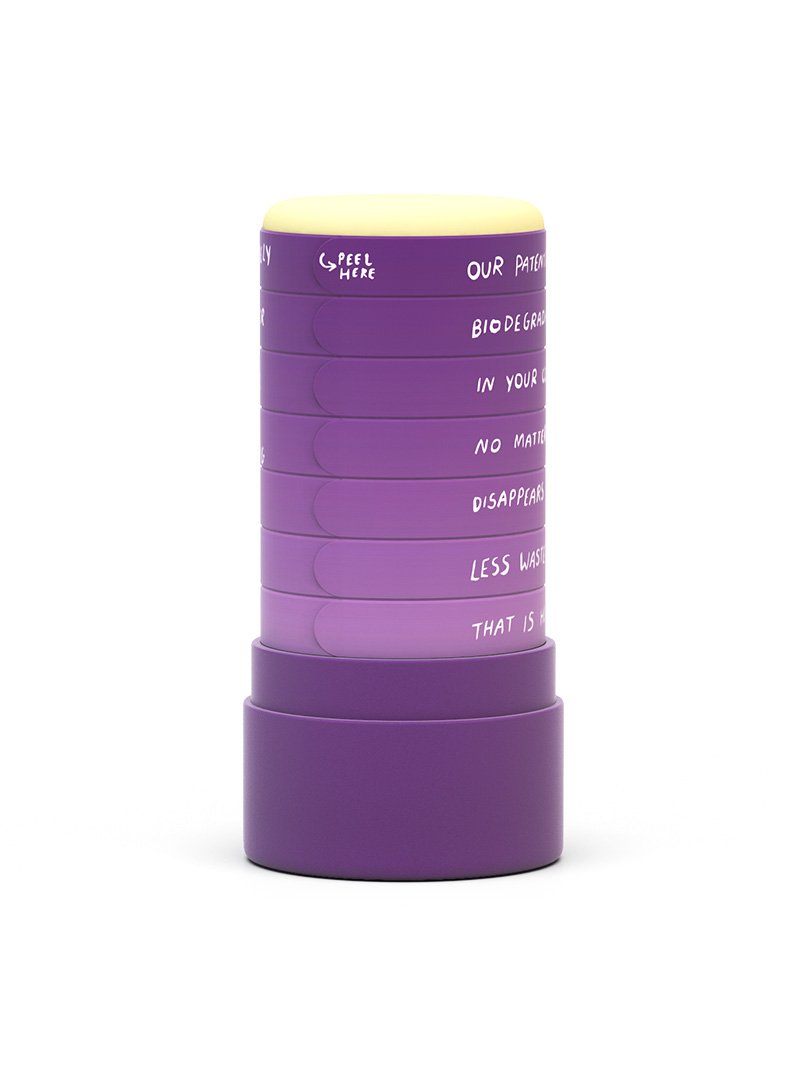 Pull off the lid and put us in your pits. As the deodorant stick wears down, husk the biodegradable P.E.E.L Tech tubing one piece at a time to get back to the good stuff.