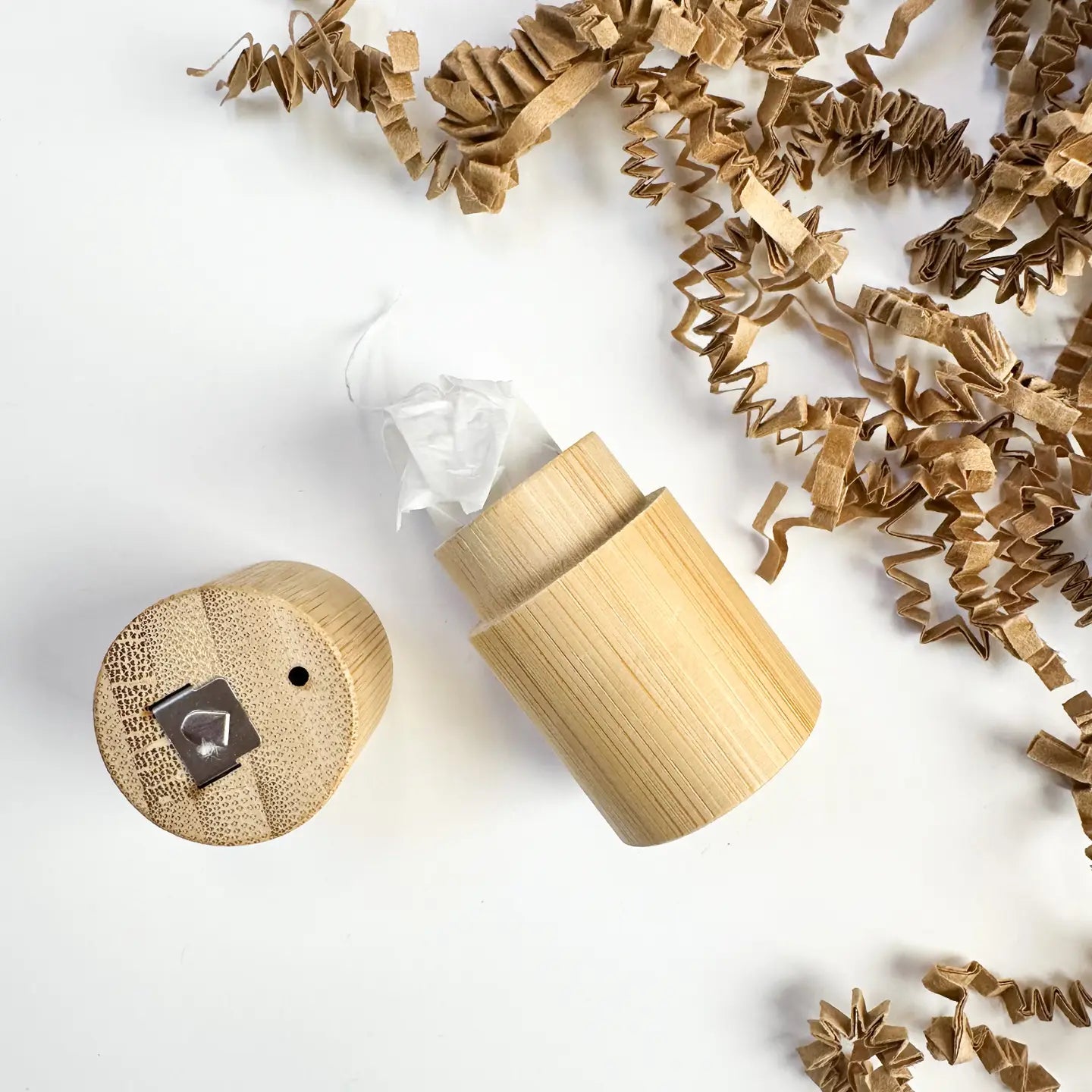 This refillable Corn Starch Dental Floss with bamboo case is made from a cornstarch-based PLA, a compostable, sustainable, and plant-based floss that is vegan friendly and plastic free.